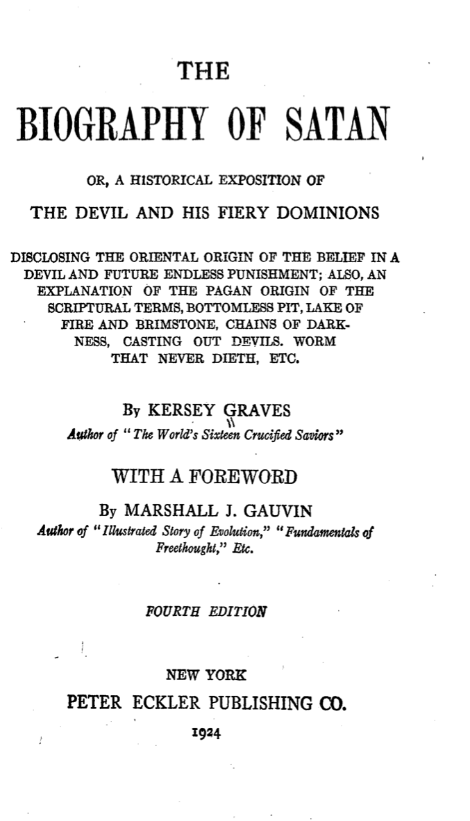 “Biography of Satan” by Kersey Graves explores the origins and evolution of the concept of Satan across different cultures and religions. Graves examines how the figure of Satan has been portrayed from ancient mythologies to modern religious texts. The book delves into the historical, cultural, and psychological aspects of the devil’s imagery, highlighting the variations and influences that have shaped the character of Satan over time.
