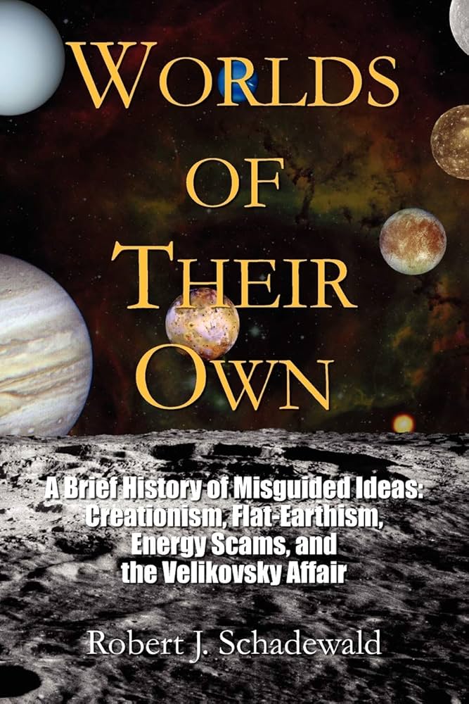“Mundos propios” Robert J. Schadewald examina críticamente diversas ideas y creencias pseudocientíficas que han persistido a pesar de contradecir el conocimiento científico establecido. El libro aborda temas como el creacionismo, las teorías de la Tierra plana, las estafas energéticas y el caso Velikovsky, proporcionando contexto histórico y un análisis de la persistencia de estas creencias. Schadewald explora las motivaciones que subyacen a estas ideas y su impacto en la ciencia y la sociedad.