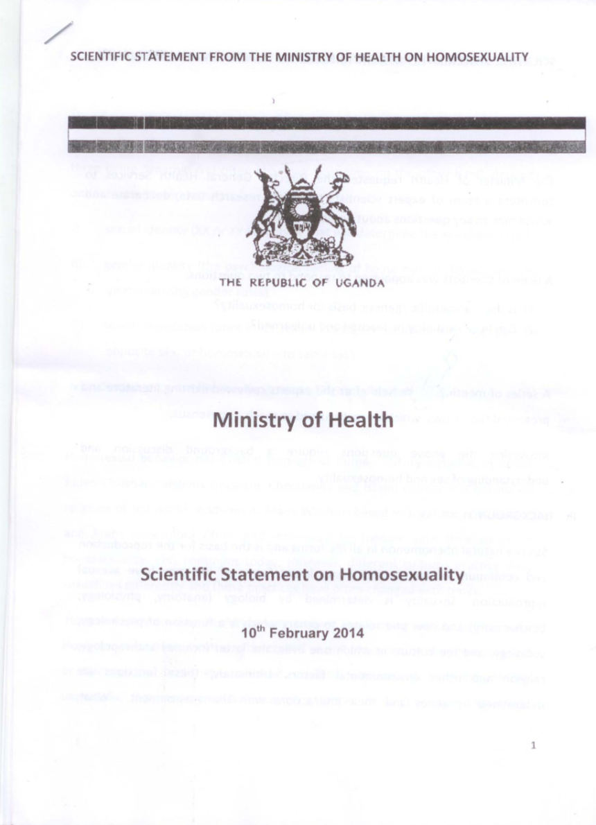 IL “Rapporto scientifico dell’Uganda sull’omosessualità” Esamina gli aspetti biologici, psicologici e sociali dell'omosessualità nel contesto ugandese. Il rapporto mira a fornire una base scientifica per comprendere l'orientamento sessuale, sfidando preconcetti e miti diffusi nella società. Esplora le influenze genetiche, ormonali e ambientali sull'orientamento sessuale e sottolinea l'impatto dello stigma e della discriminazione sulle persone LGBTQ+. Il rapporto promuove politiche basate sull'evidenza e una maggiore accettazione della diversità sessuale.